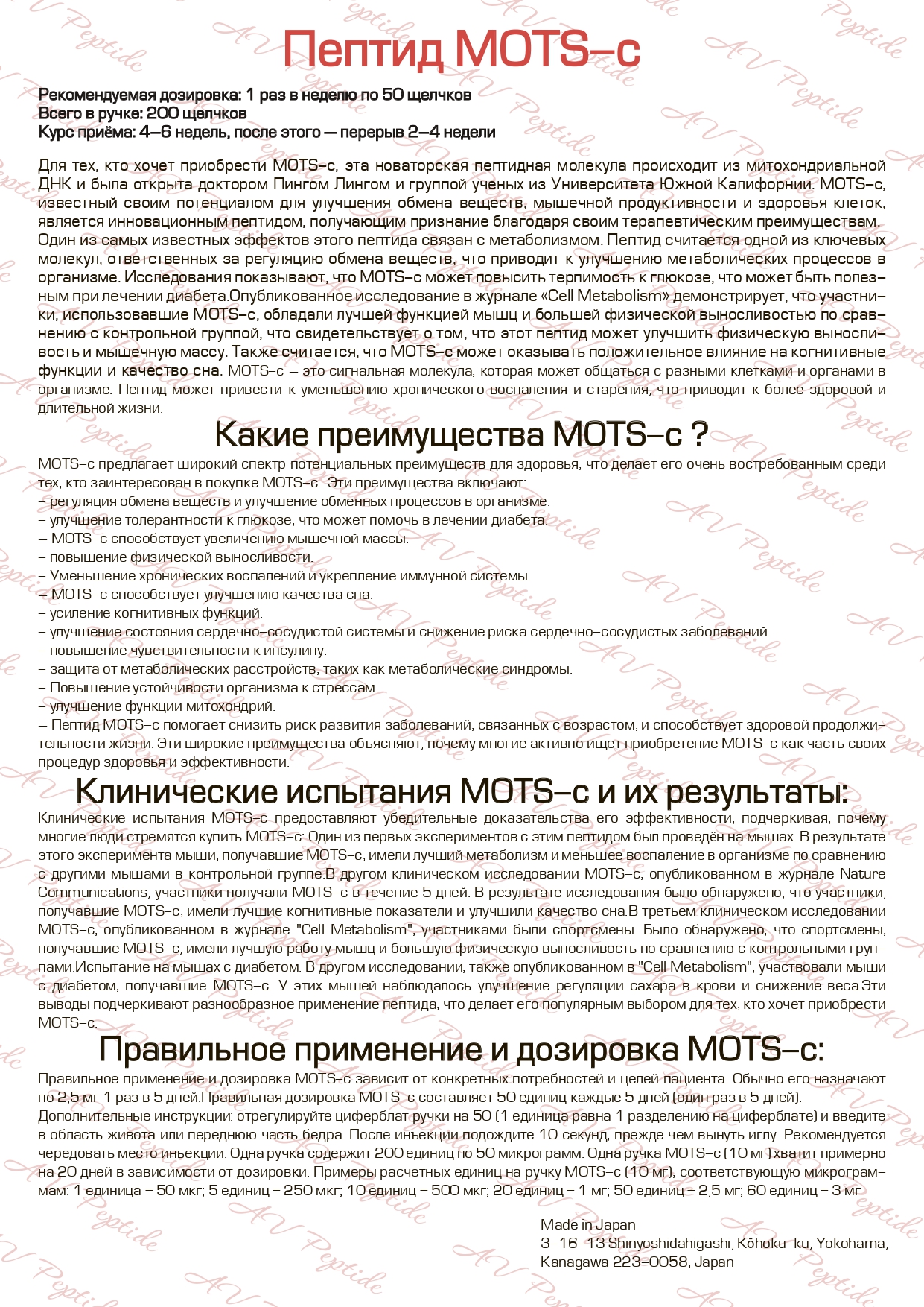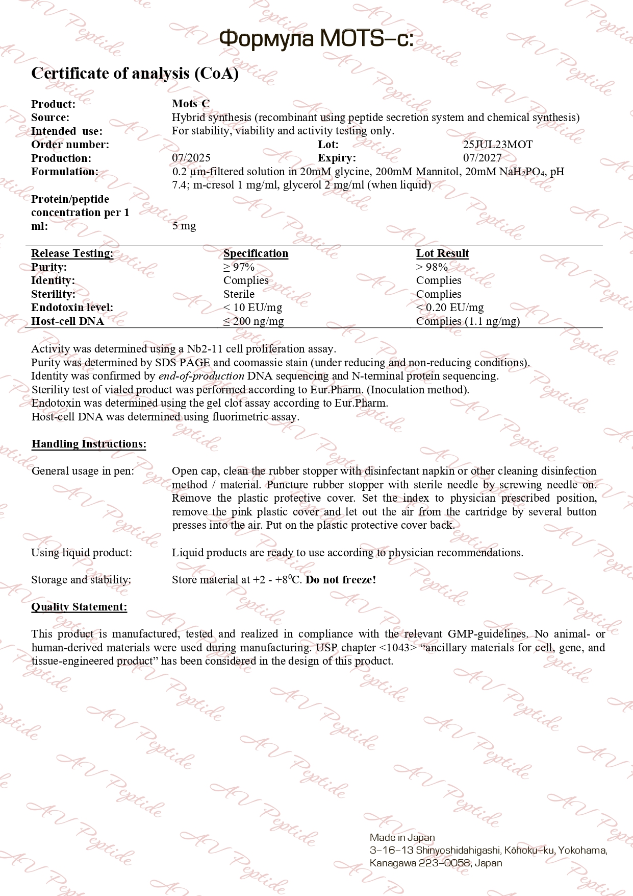 AV Peptide Mots-c — це біоактивний пептид нового покоління, який сприяє покращенню обміну речовин, боротьбі з віковими змінами, зниженню жиру та підвищенню енергії на клітинному рівні. Препарат у зручній шприц-ручці, готовий до введення.