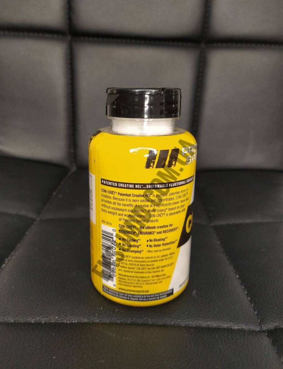 Якісний креатин гідрохлорид у формі порошку з фруктовим або без смаку, без додаткових компонентів. Добавка призначена для спортсменів, які потребують додаткової підтримки м’язової системи, без необхідності набирати загальну вагу тіла. CON-CRET є найбільш легкозасвоюваною формою креатину, доступнішою і, отже, не потребує великого обсягу завантаження або відключення. Креатин CON-CRET забезпечує значний приріст продуктивності, витривалості та відновлення м’язів, його можна безпечно приймати щодня.