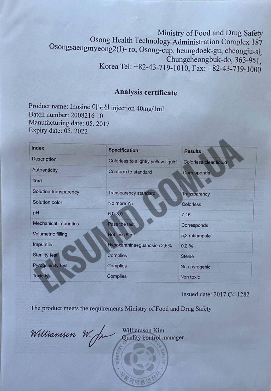 Допоміжні речовини: гідроксид натрію – 2.2 мг, вода д/і – до 1 мл.